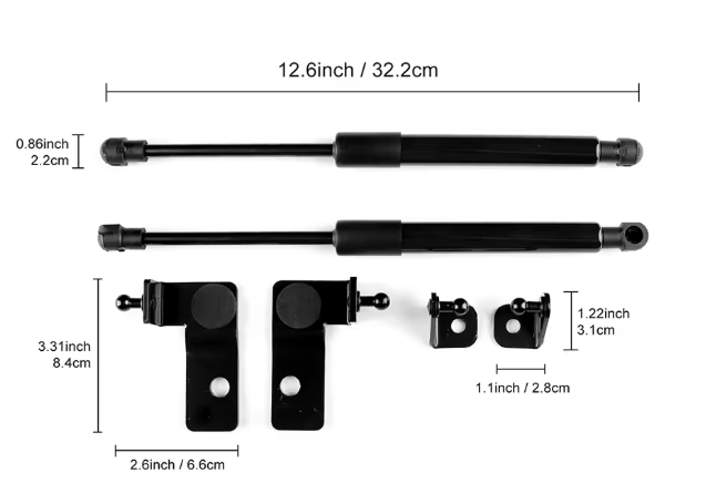 • Hydraulische Gasdruckdämpfer (ein Paar, links und rechts) zur Montage unter der Motorhaube
