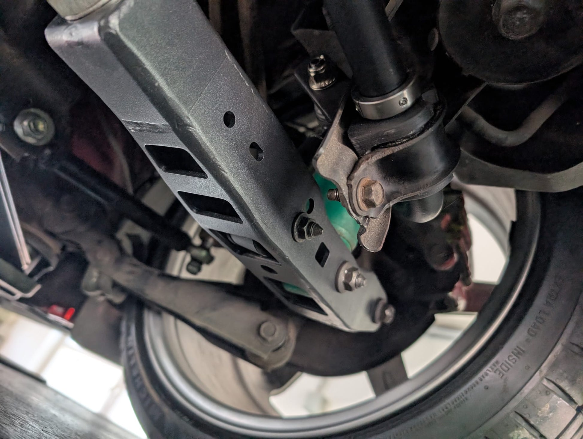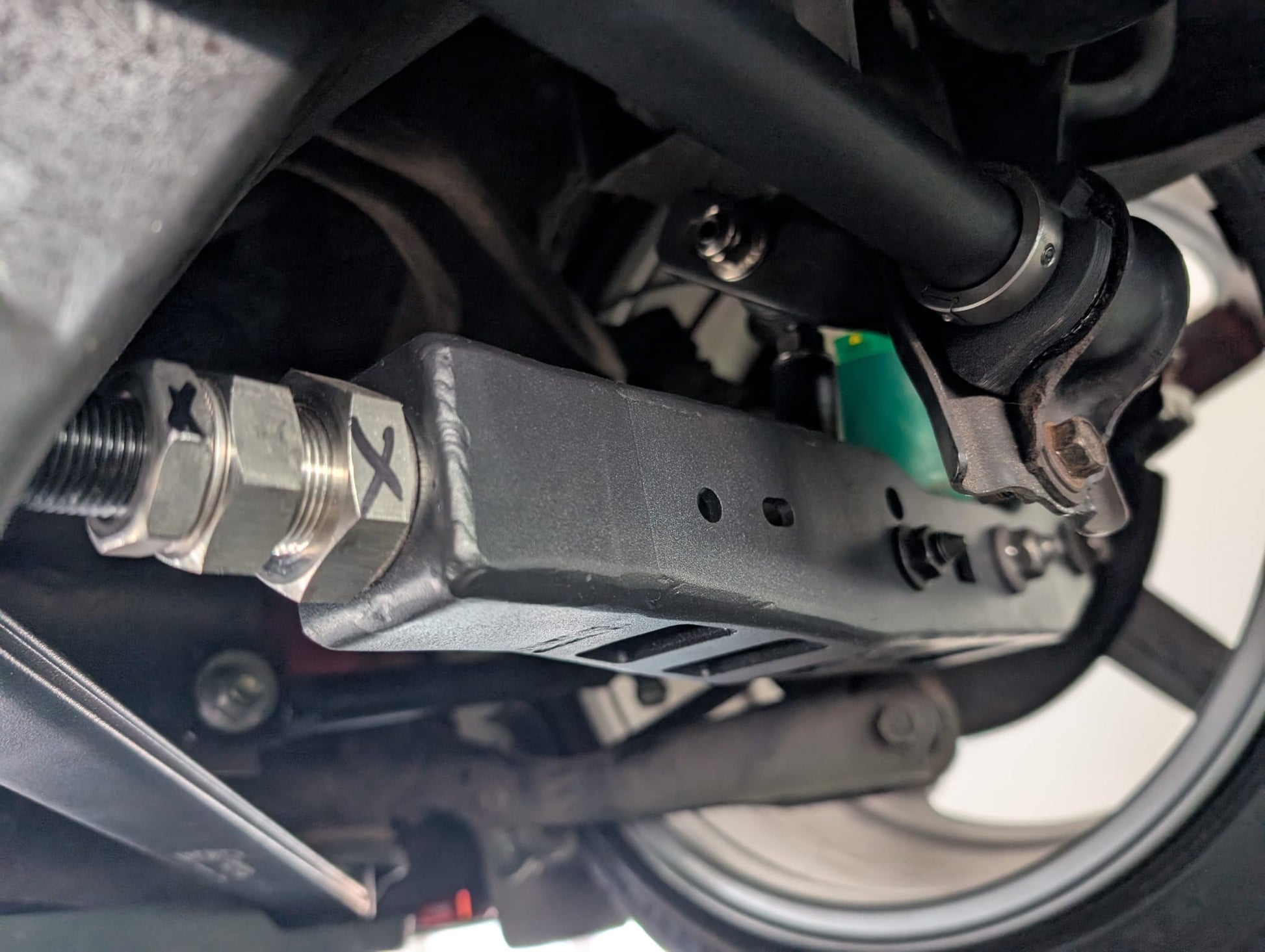 Für Tiefergelegte: selbst ohne einstellbare Koppelstangen lässt sich die Geometrie durch die Auslegung der Aufnahmepunkte (2 Varianten) anpassen, was besonders bei originalen nicht verstellbaren Kopplestangen vorteilhaft ist. Bei Koppelstangen von zB Whiteline ist eine nötige Anpassung nicht auszuschließen.