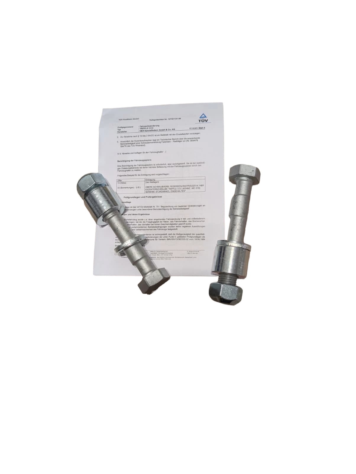 Mit den H&R Sturzkorrekturschrauben lässt sich der Radsturz an der Vorderachse gezielt einstellen. Gerade bei tiefergelegten Fahrzeugen entsteht oft unerwünschter negativer Sturz – dieses System ermöglicht eine saubere Korrektur und Feinabstimmung für optimales Fahrverhalten.