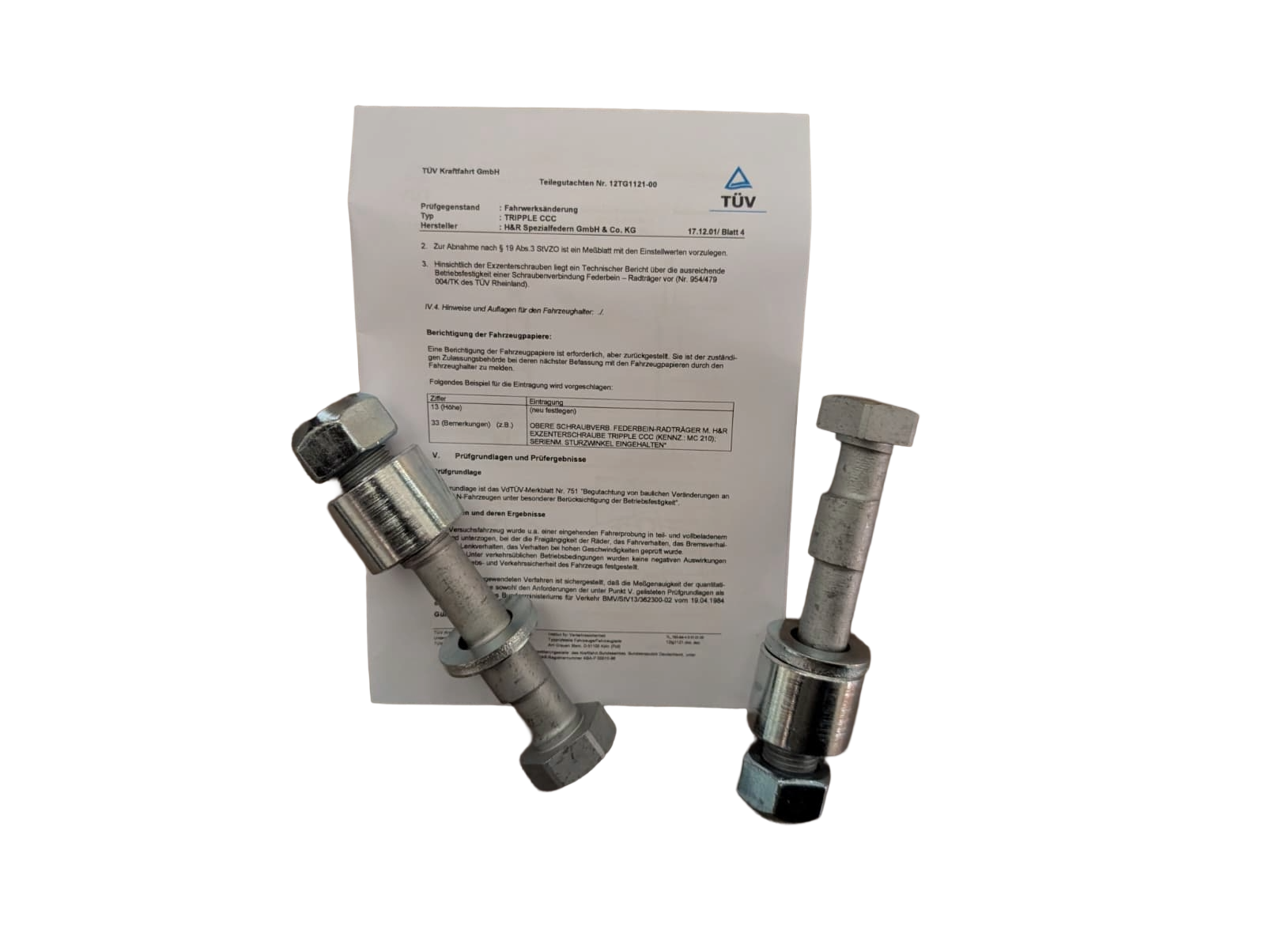 Das H&R Triple C System ist speziell dafür ausgelegt, eine legale Anpassung der Fahrwerksgeometrie zu ermöglichen. Gerade im Vergleich zu vielen anderen Lösungen am Markt ist dies ein entscheidender Vorteil für den Einsatz im Straßenverkehr.